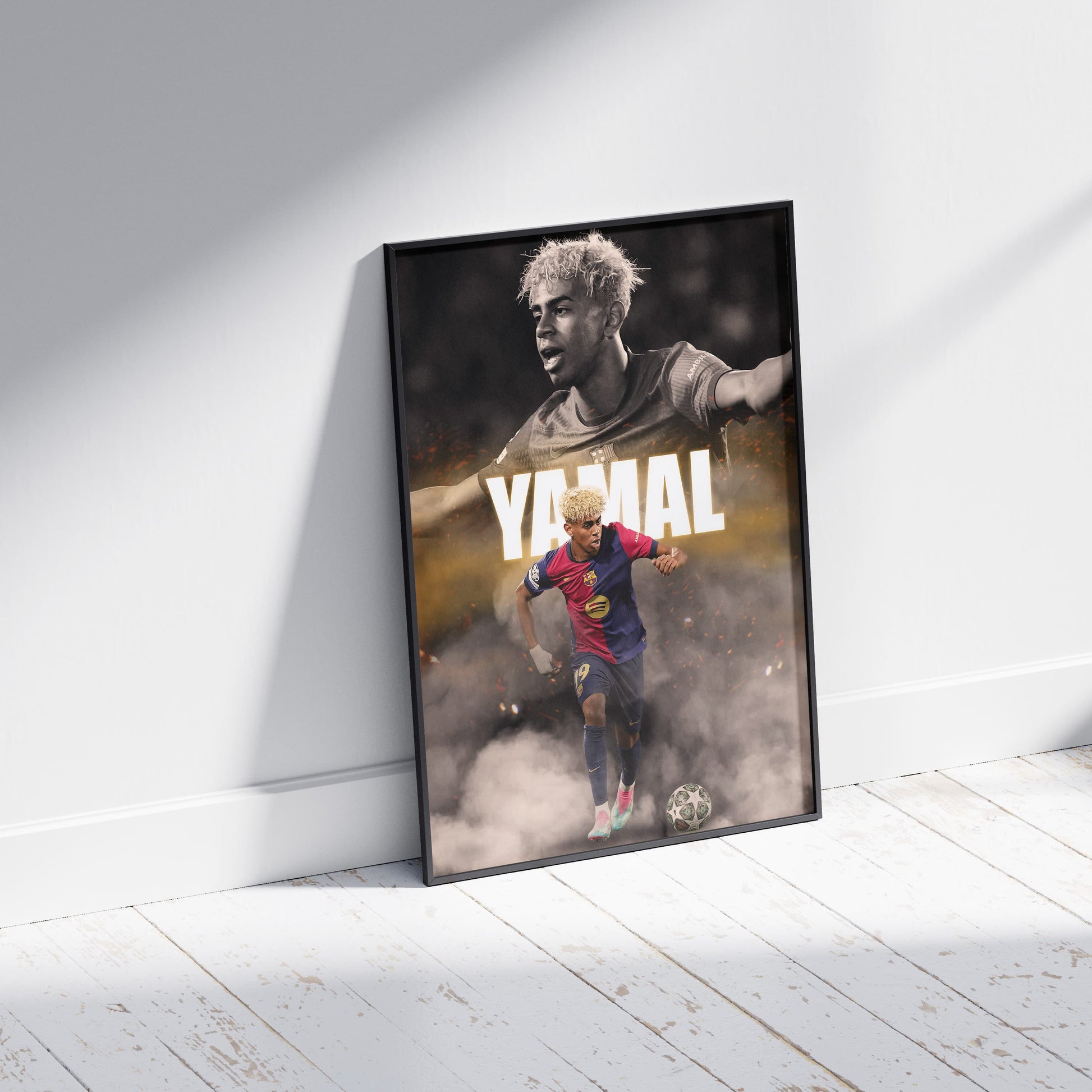 Football poster print of Lamine Yamal and his time with FC Barcelona and the Spain national team. Crafted with the utmost precision and care, made to guarantee that it'll get compliments no matter what room it's in.
